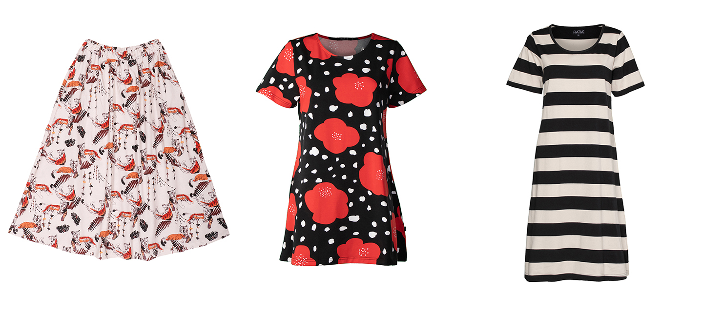 Ompelimomme vahvuuksia ovat neuloksista valmistettavien aikuisten ja lasten päivä- ja yöpukeutumisen tuotteet. Niitä ovat muun muassa T-paidat, collegepaidat, leggingsit, collegehousut, tunikat, mekot, yöpaidat ja pyjamat. Myös trikoosta valmistetut hatut, huivit, kaulaliinat ja scrunchiet eli hiusdonitsit, bokserit, pitkikset, alushousut ja -paidat sekä vuodevaatteet kuuluvat valmistettavien tuotteiden valikoimaan.