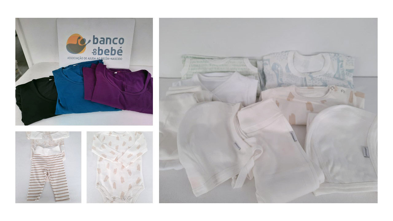 Black Moda Portugal lahjoitti Kelan äitiyspakkauksestakin tuttuja bodyja, vauvahousuja ja kypärämyssyjä Banco do Bebé:n tukemille vastasyntyneille. Paketti sisälsi myös KUDE-tunikoita pienokaisten äitejä varten.
